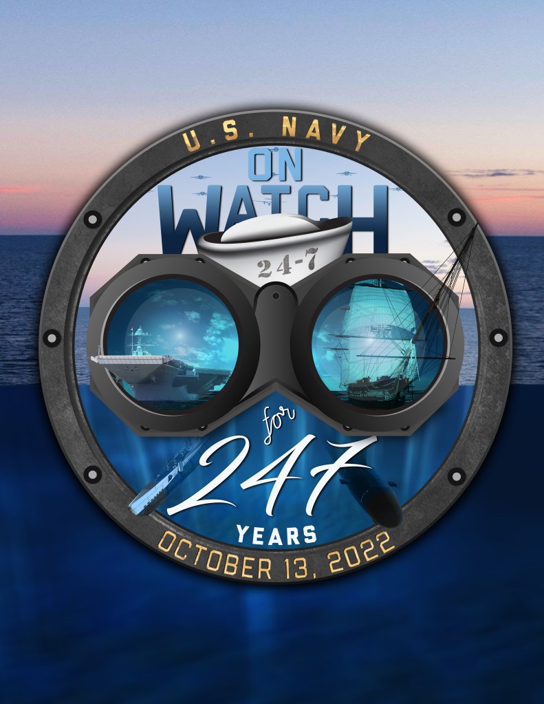 “13 October 2022 will mark the Navy’s 247th birthday. The central theme of this year is “On Watch – 24/7 for 247 Years,” which highlights our Navy’s enduring ability to remain fully ready to respond to and effectively deter emergent threats.” Read more history about the US Navy at the Naval History and Heritage Command website at https://www.history.navy.mil/.
